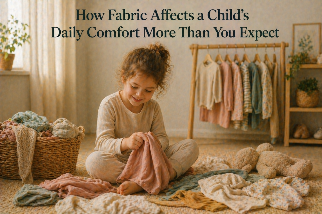 You don’t always notice it right away, but how fabric affects a child’s daily comfort more than you expect becomes obvious somewhere in the middle of the day. Not when they get dressed — everything feels fine then — but later, when movement, temperature, and small irritations start to add up.